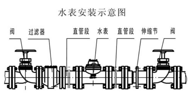 4.水表安裝時表殼上的箭頭方向必須與水流方向一致,臥式水表安裝必須水平。水表安裝位置應(yīng)能避免暴曬,且便于拆卸和觀察的場所,寒冬季節(jié)應(yīng)采取保溫措施。