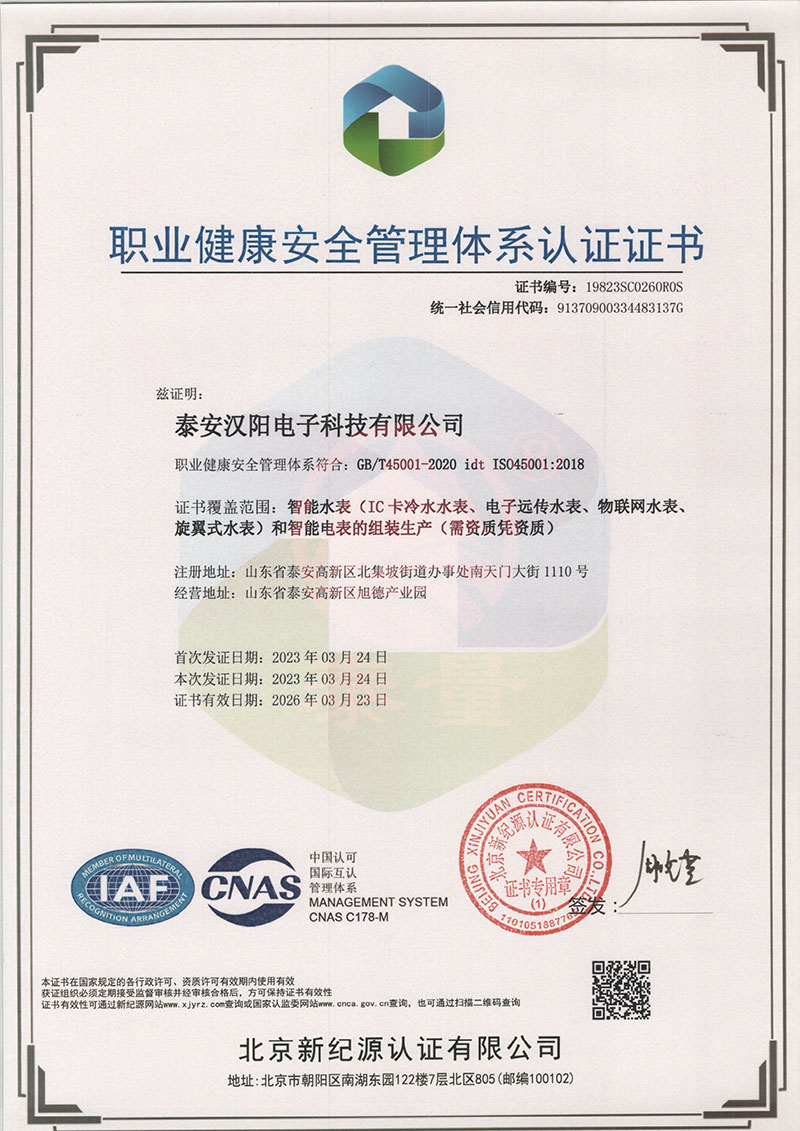 職業(yè)健康管理體系認(rèn)證證書